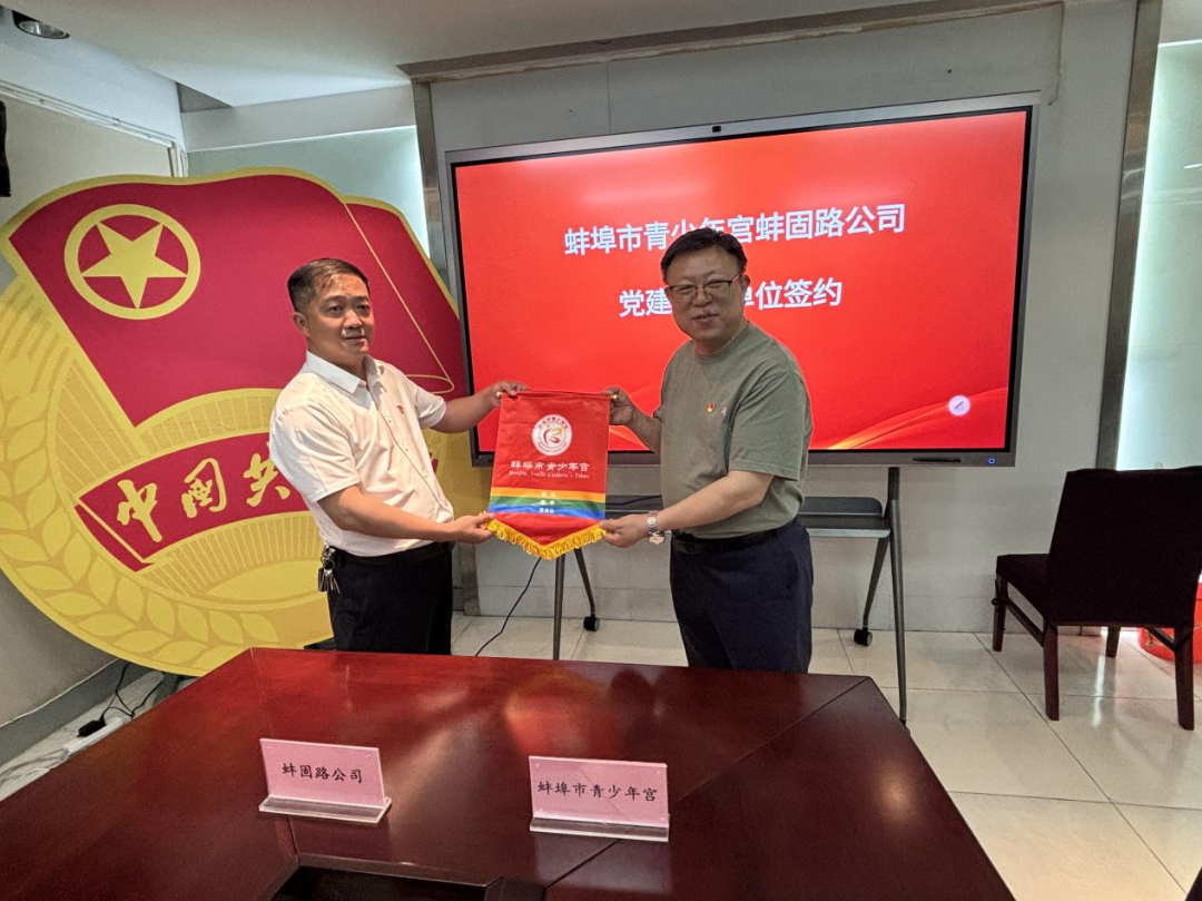 4月25日,蚌固路公司与市青少年宫举行签约仪式,正式签订《党建共建合作协议》及《蚌埠市青少年宫活动基地联盟协议》,以“党建引领+业务合作”双轮驱动,携手打造青少年校外实践教育创新模式。此举系“平安微笑蚌固路”品牌获评全省交通运输精神文明建设先进典型培树对象后,深化跨行业协同发展的创新实践。