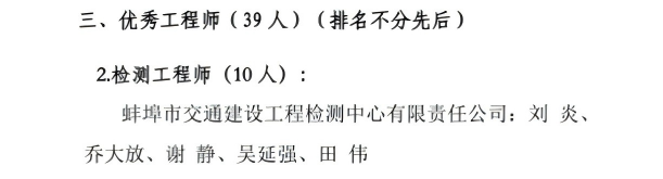 亳州市公路学会2024年度优秀工程师名单