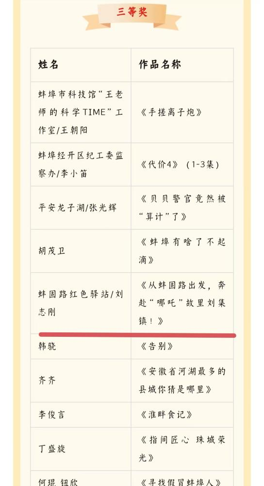 近期,由中共蚌埠市委网信办主办的“自媒扬新风蚌发好故事”2025年蚌埠市网络文明建设优秀短视频作品征集活动结果公布,蚌固路红色驿站自媒体创作团队凭借《从蚌固路出发,奔赴“哪吒”故里刘集镇!》作品,斩获最佳创意类三等奖。