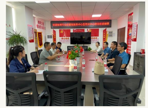 6月9日,蚌埠市公路管路服务中心五河分中心领导一行参观位于蚌固路一级公路收费站处的蚌埠交投集团路桥公司朱子桥劳模创新工作室,路桥公司总经理王磊、劳模创新工作室负责人朱子桥全程陪同参观并进行详细讲解。