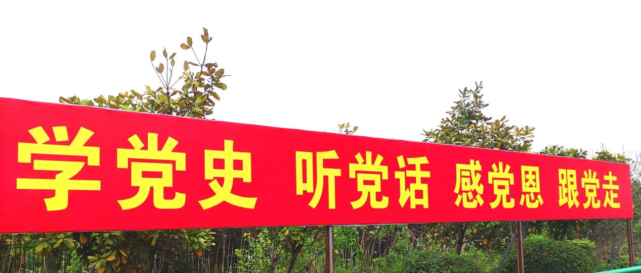 3、在收费广场道路两侧各树立两条长12米宽1.2米,印有“学党史,悟思想,办实事,开新局”、“学党史,听党话,感党恩,跟党走”字样的党史学习教育大型宣传横幅。