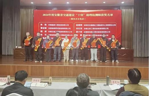 安徽省公路学会“十佳”检测工程师和助理检测工程师是对在我省公路交通工作中做出突出贡献的试验检测专业技术人员授予的最高荣誉称号,评选围绕政治思想、持证资质、工作经验、业绩贡献等多维度严格筛选,门槛高、含金量足,充分彰显了获奖人员的专业素养与工作实绩。