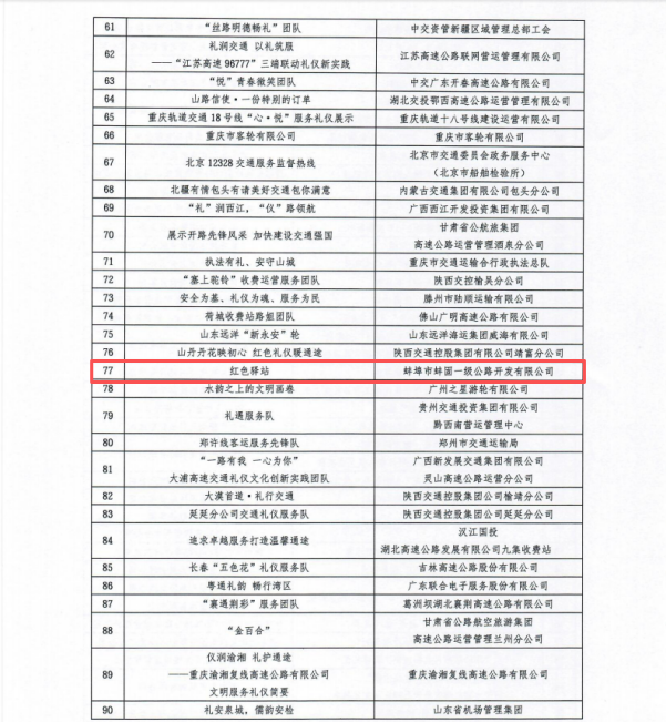 蚌固路公司“红色驿站”服务品牌成功入围 全国交通礼仪文化展示决赛
