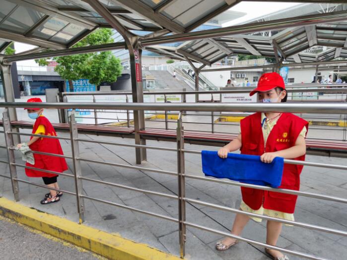 8月12日,公交集团在高铁南站公交首末站和红色故事党史园开展“小手拉大手文明一起走”志愿服务活动。小小志愿者们在父母的陪同下对高铁场站的站台座椅和护栏进行逐个擦拭、消毒,并在党史园捡拾垃圾,维护环境卫生。头戴小红帽的小朋友辛勤劳动的场面,成为了这个夏日里最靓丽的风景线。 活动结束后,小小志愿者们纷纷表示:清洁防疫工作需要大家的共同努力,今后还会继续参加这样的公益实践活动,提高文明素养、养成文明习惯、规范文明行为举止,增强防疫卫生意识和志愿服务的奉献精神,努力营造全民参与文明城市创建的浓厚氛围。