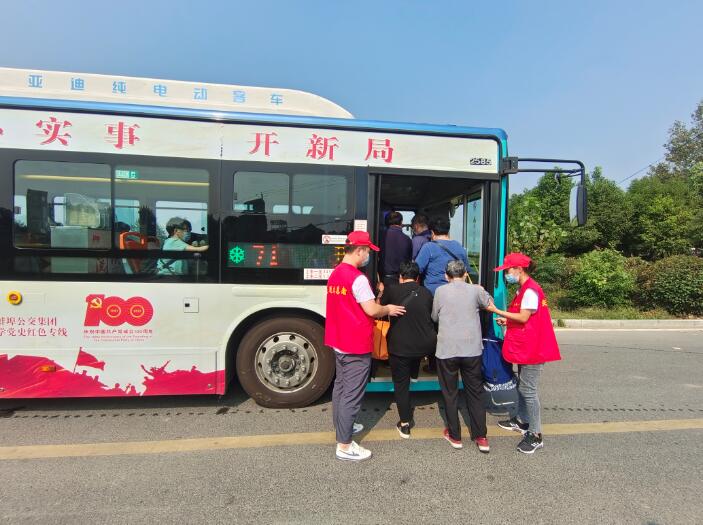同时,在71路终点站孙家圩子,另一拨志愿者在这里开展了文明交通劝导志愿活动,由于该站乘客普遍年纪较大,志愿者们一边引导他们有序排队乘车,一边扶老携幼,小心搀扶老人上车,收到了老人们的交口称赞。