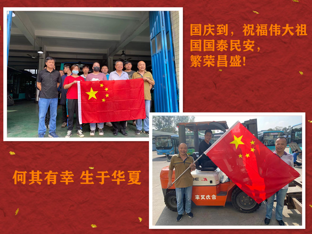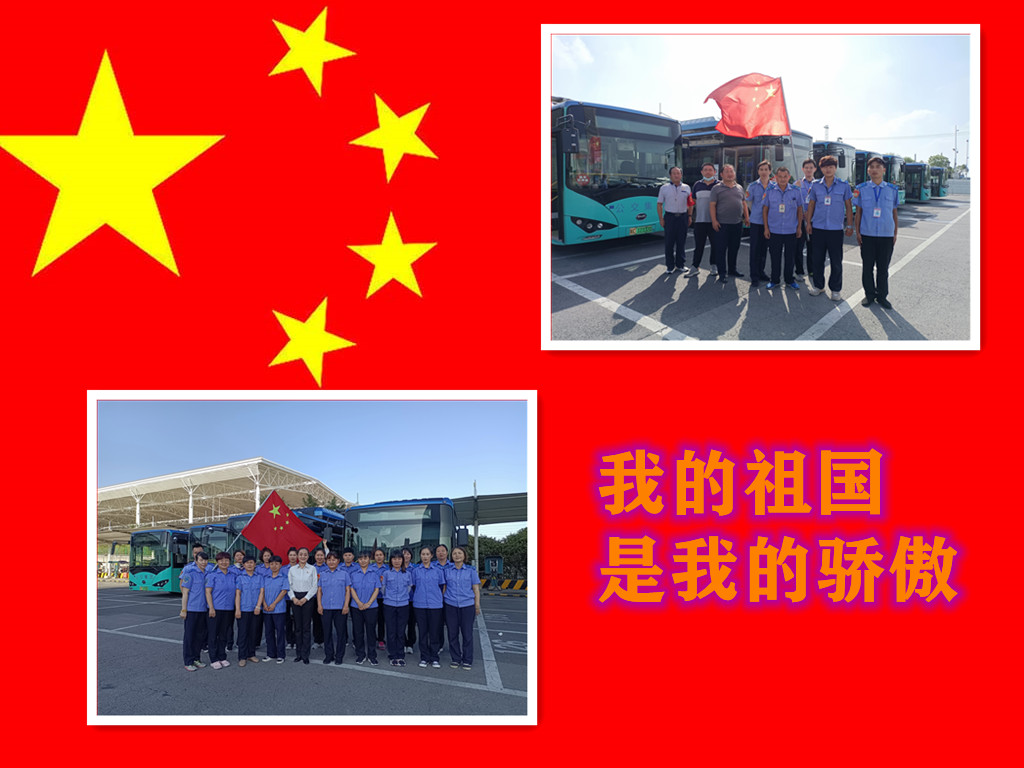 10月1日国庆节即将来临,公交集团开展了“我和国旗合个影”、“我为祖国送祝福”迎国庆主题庆祝活动,祝福祖国母亲72岁生日,公交人在喜庆的气氛中用一张张照片和和一句句祝福抒发了公交职工的爱国情怀。公交人用自己的方式迎接国庆佳节,表达对祖国的祝福和对未来的美好期盼。