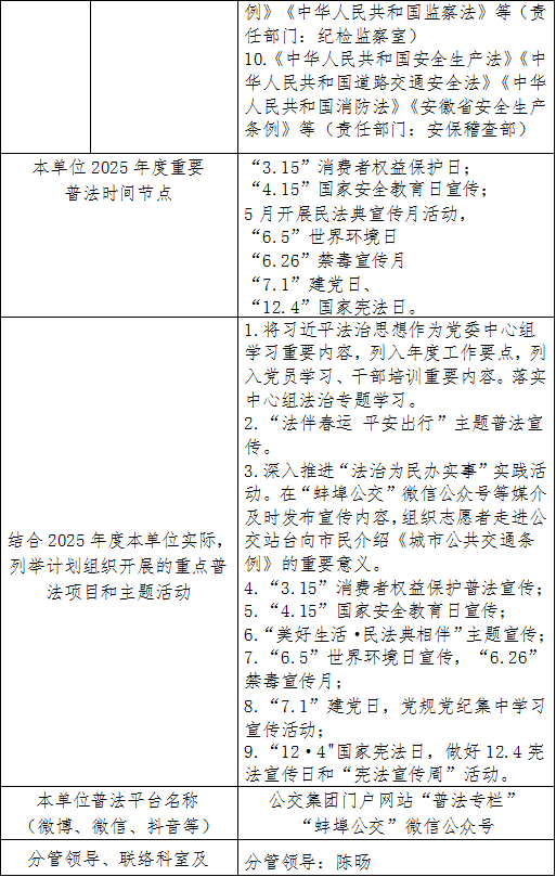 2025年度普法责任清单