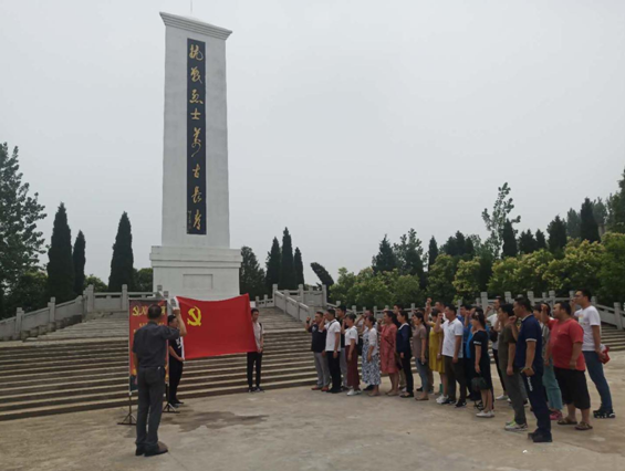 2019年6月21日上午,公交一公司党支部、旅游公司党支部、票卡党支部,全体党员前往固镇县任桥清凉村淮北西大门抗战烈士陵园,瞻仰英雄烈士纪念碑,传承革命精神。